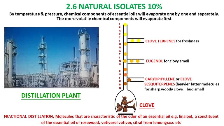 By temperature & pressure, chemical components of essential oils will evaporate one by one and separately. The more volatile chemical components will evaporate first.