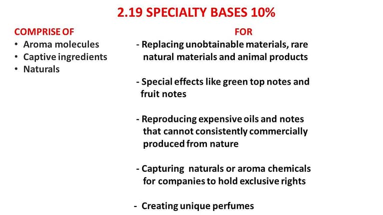Perfume is a mix of compound, solvent and additives. Perfume compound or concentrate is comprise of Natural Materials, Synthetic Materials, Animal Materials and Specialty Bases.